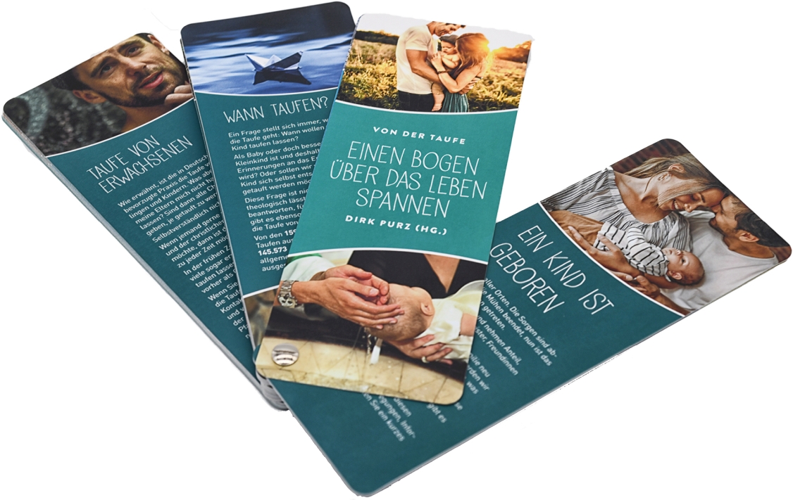 Der Tauffächer ist vielfältig gestaltet: hier einige Infos zu den Bräuchen und Symbolen dieses Festes, dort ein kurzer Text, der wie eine Taufkerze vorausleuchtet, dazu musikalische Überraschungen, pfiffige Ideen zur Feier und biblische Worte und Geschichten zur Taufe. Ein Zitat, eine Bildergeschichte und ansprechende Fotos runden das bunte Spektrum ab.