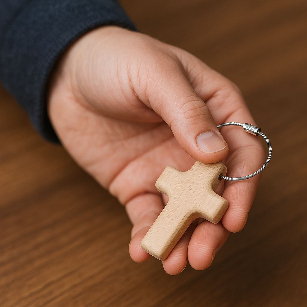 Schönes Kreuz aus unbehandelter Buche. Ideal als Schlüsselanhänger, Kette oder dank des Holzes auch individuell zu bemalen.